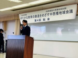 子どもたちの健やかな成長を願い、保護者・労働者・教職員で結成された「ゆたかな教育の創造をめざす中西播地域会議第4回総会が10/25(土)、姫路市教育会館で開催されました。子どもたちの教育条件整備に向け、これまで以上に連携を密に取り組んでいきます。総会終了後には、「あかつき中のレゾンデートル(存在意義)とは」の演題で、山下校長先生より公立夜間中学校の案内や紹介がありました。