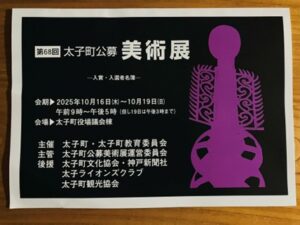 10/16(木)~19日(日)9時~17時※19日(日)は15時まで、太子町役場の議会棟にて第68回太子町公募美術展が開催されています。