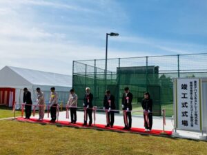 11/4(火)、東芝デバイス&ストレージ㈱ 姫路半導体工場太子地区において新たに完成した2面のテニスコートで神に感謝し、加護を祈る儀式である竣工式を挙行しました。稗田神社の宮司による神事後、テープカット・東芝姫路ソフトテニス部4名による、打ち初めが執り行われ無事終了しました。引き続き、地域と調和の取れた持続可能な社会の実現に向け、諸事取り組んでいきたいと思います。